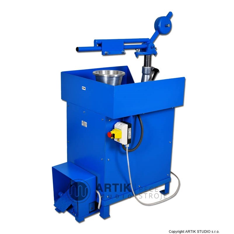 Zatáčecí kruh ZK 300 je určen pro zatáčení měkké keramické hmoty do sádrové formy. Kruh zvládne pracovat do průměru 300 – 350 mm a 70 – 80 mm výšky. Používá se k tomu speciální polohovatelné rameno na které se umístí hladítko v negativním tvaru vůči formě. Kruh má elektronickou regulaci otáček a lze jej po dohodě přizpůsobit požadavkům keramika. V případě zájmu o toto vybavení nás prosíme kontakujte k vytvoření cenové kalkulace.