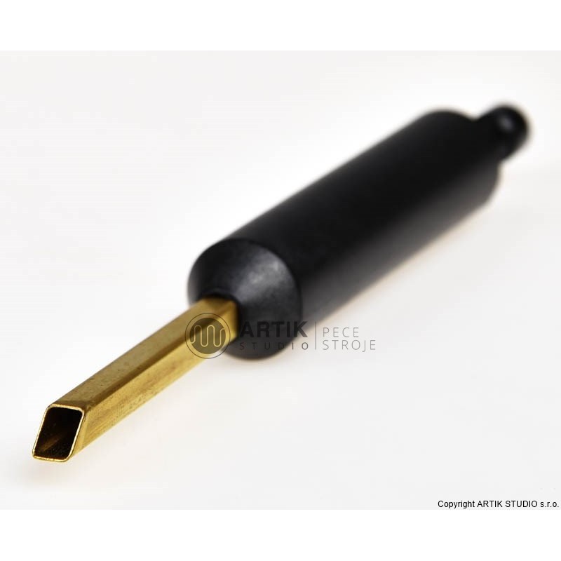 Děrovače jsou užitečným nástrojem pro vyřezávání otvorů v kožovité hlíně. Na mosazné čepeli je připevněna plastová rukojeť, která je vybavena tlačítkem pro vysunutí pístu k snadnému odstranění zbytku hlíny. V sortimentu máme větší počet typů různých velikostí děrovačů. Jednotlivé velikosti se při práci dobře vzájemně doplňují.