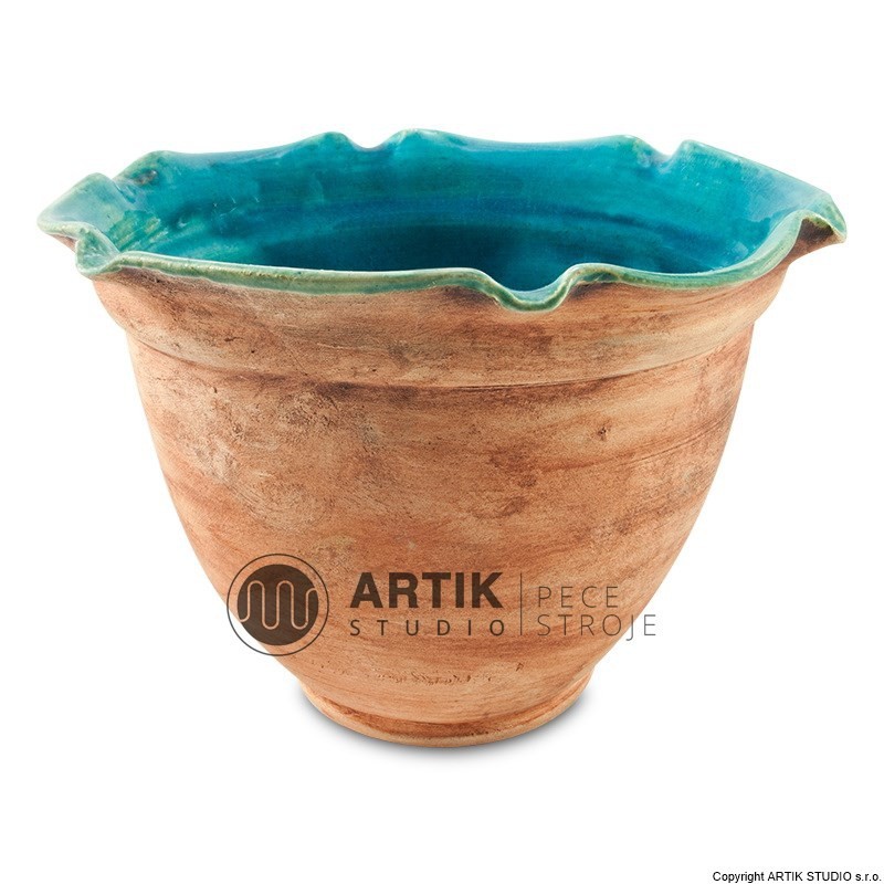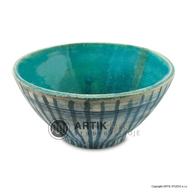 Tekutá polotransparentní modrozelená glazura s efektem, doporučený výpal 1020 – 1080°C.