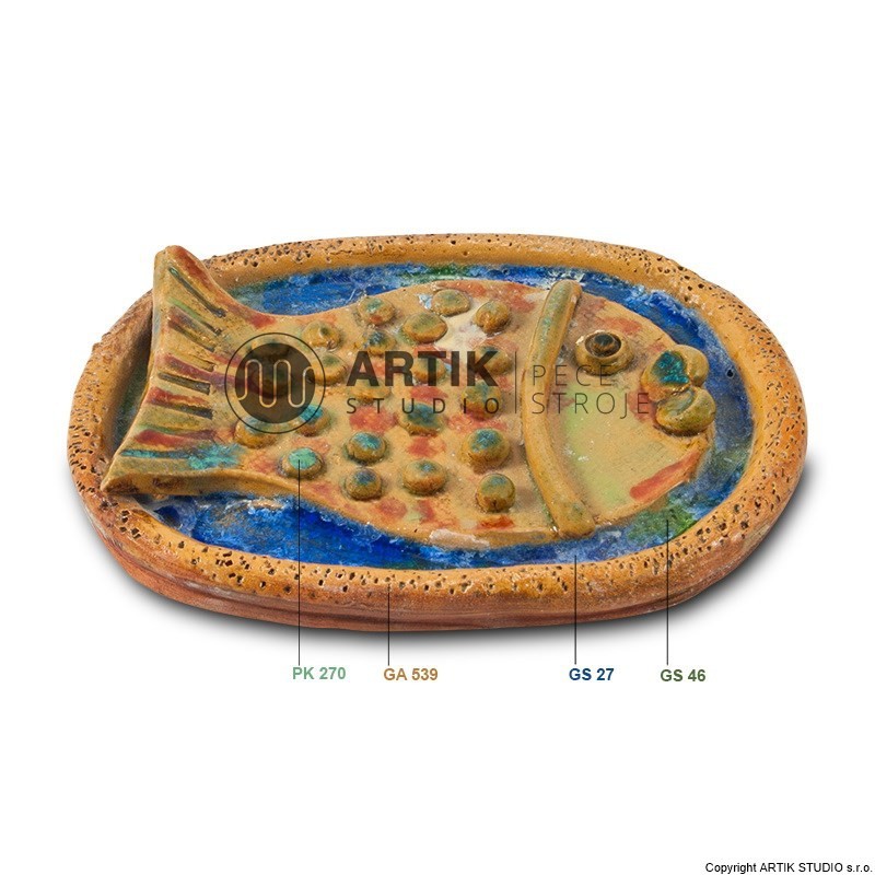 Tekutá krycí modrozelená glazura s matným efektem s obsahem antisedimentačních přípravků určená k okamžité práci. Doporučujeme nanášet ve vrstvě 1 – 2 mm. Glazura je bezolovnatá, neobsahuje nebezpečné látky a je vhodná pro práci v zájmových organizacích a školních dílnách.