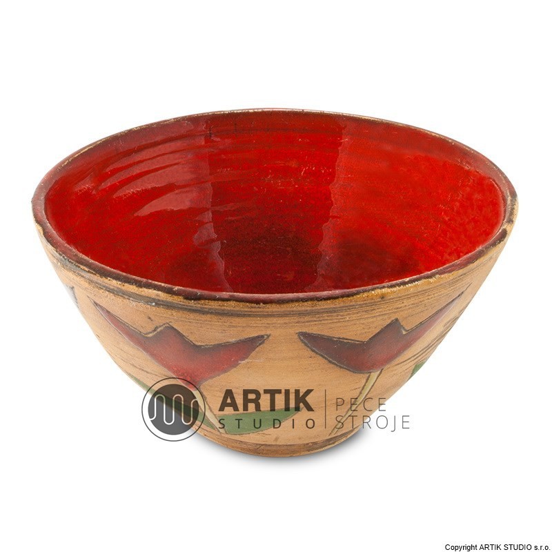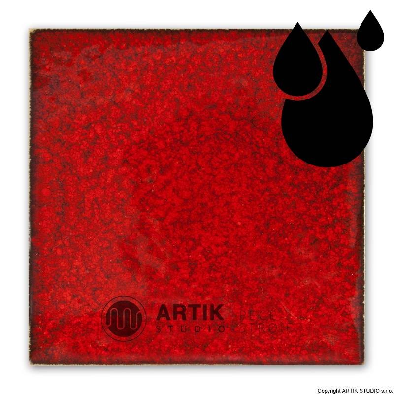 Tekutá krycí sytě červená glazura s nádherným výkvětem, doporučený výpal 1020 – 1080°C.