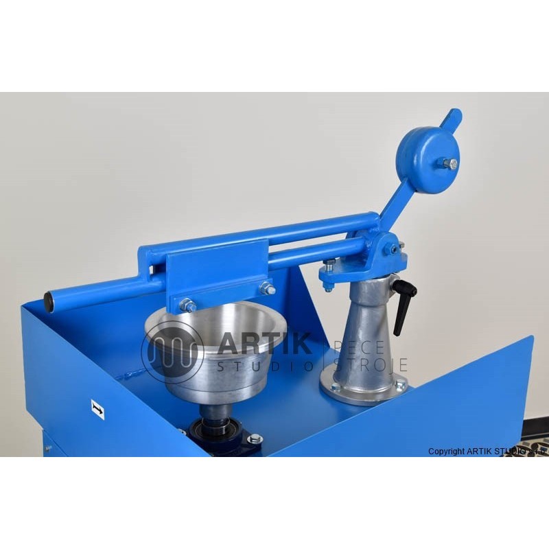 Zatáčecí kruh ZK 300 je určen pro zatáčení měkké keramické hmoty do sádrové formy. Kruh zvládne pracovat do průměru 300 – 350 mm a 70 – 80 mm výšky. Používá se k tomu speciální polohovatelné rameno na které se umístí hladítko v negativním tvaru vůči formě. Kruh má elektronickou regulaci otáček a lze jej po dohodě přizpůsobit požadavkům keramika. V případě zájmu o toto vybavení nás prosíme kontakujte k vytvoření cenové kalkulace.