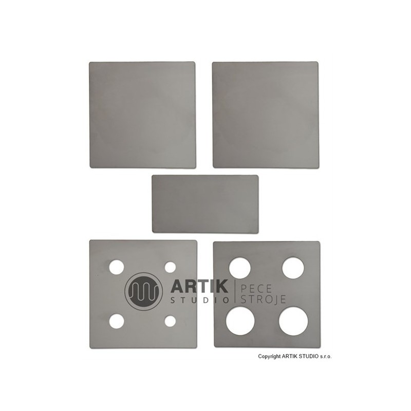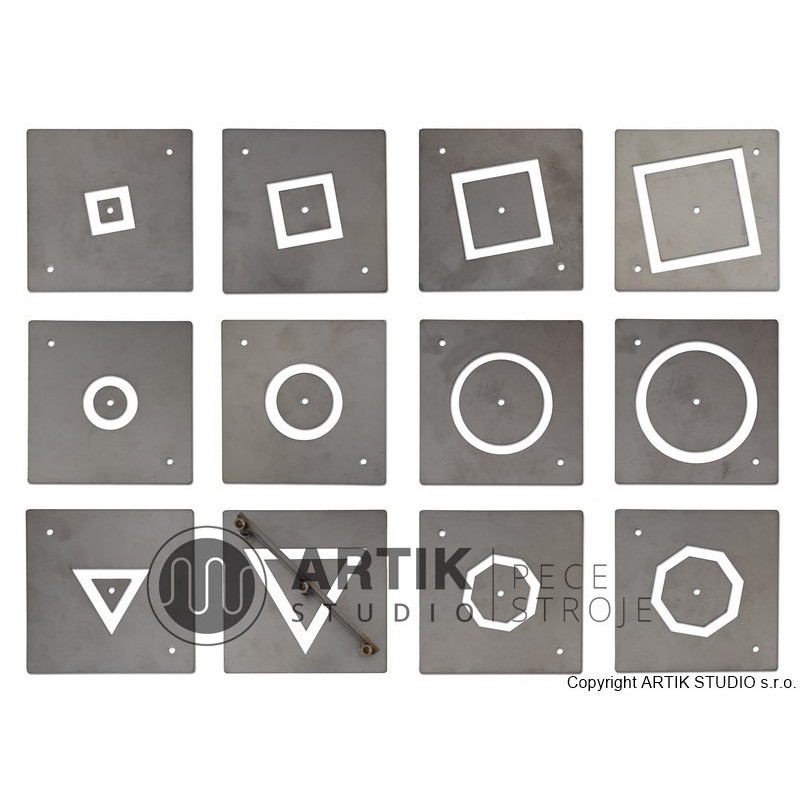 Součástí dodávky nástěnného keramického lisu je 5 ks základních profilů. Na přání můžeme také dodat rozšiřující sadu 12 ks různých dutých tvarů. Vnitřní část dutých profilů se fixuje pomocí speciální spony. Lis má připravené fixační otvory pro uchycení na zeď, či volně stojící ocelový stojan, který je dostupný jako příslušenství za příplatek.